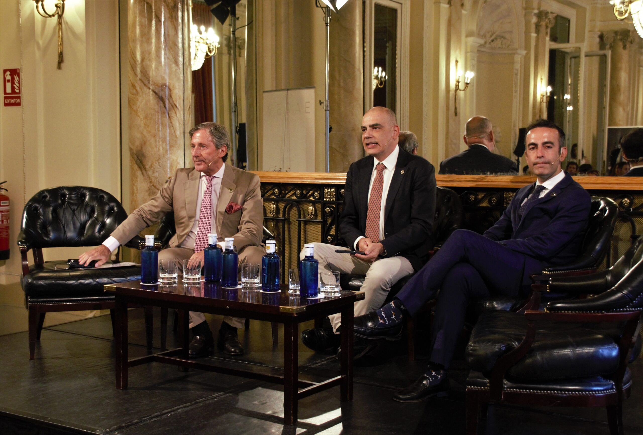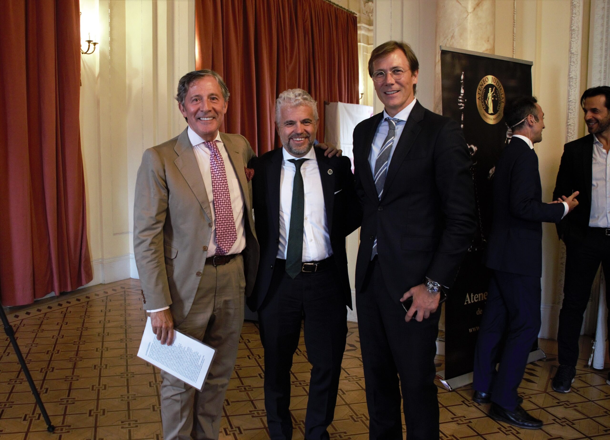 - El periodista Jesús Álvarez con Javier de la Orden Gómez y Adolfo López Estebaranz, socios de Verae
